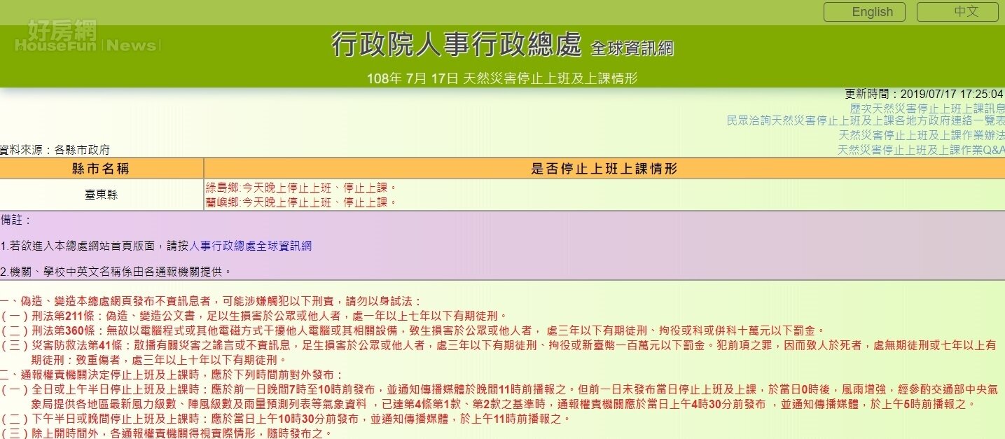 上班上課 人事行政局, 停止上班上課查詢網頁 人事行政局停班停課查詢電話 免費就是讚